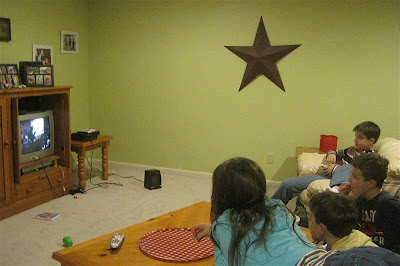 This is what the first afternoon of winter break looked like. Four kids chillin' in the playroom with a movie and popcorn. You can almost hear the sighs of relief....from the kids and from me. No early morning races, no making lunches, no rushed breakfast requests, no checklist reminders on the way out the door - "Did you brush your teeth? Do you have everything?" etc. etc.., no checking backpacks, no homework....NO SCHOOL for almost 2 weeks! Woo Hoo!